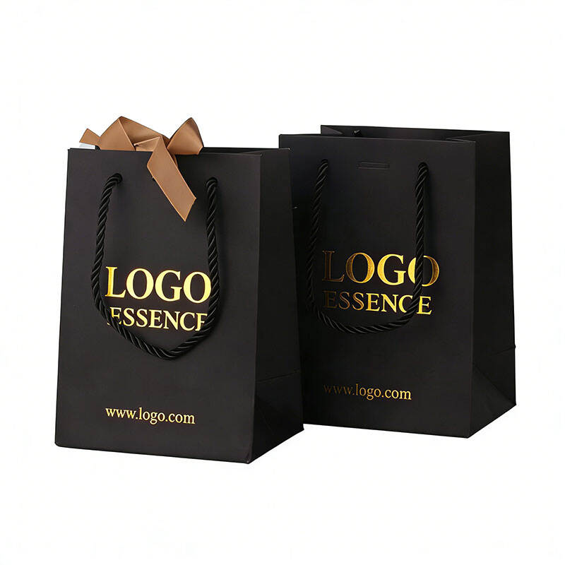 Potencie la experiencia de desempaque de su marca con nuestras bolsas de papel de cartón negro de alta calidad, diseñadas para combinar lujo, durabilidad y personalización, reflejando perfectamente la identidad de su negocio.